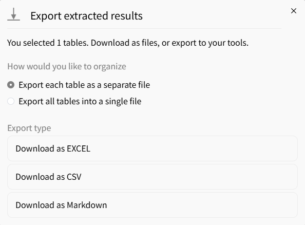 Export extracted tables into structured Excel or CSV format instantly.